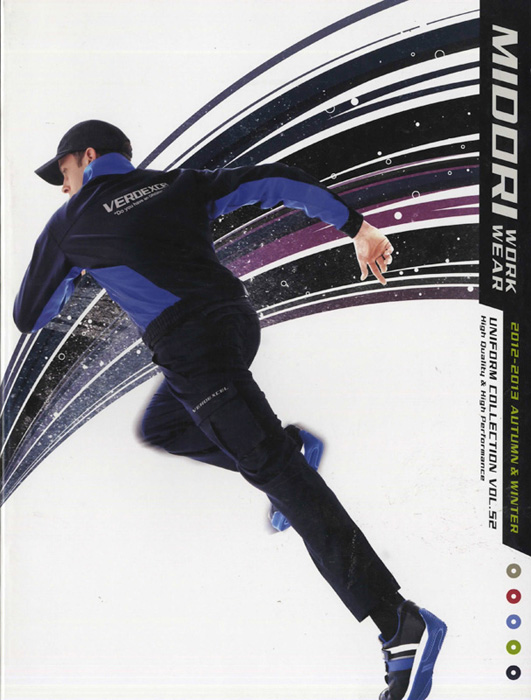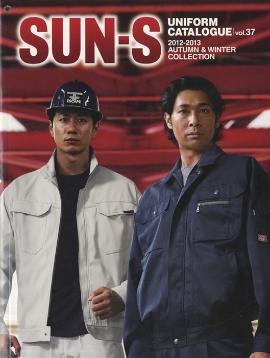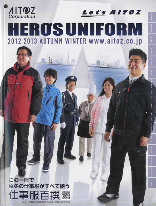 ワーキングからサービスユニフォーム、警備服、安全靴と幅広くラインナップ。カタログモデルは格闘家 角田信朗選手です。